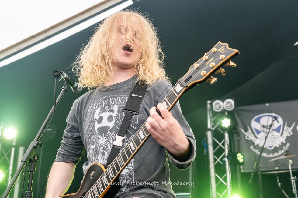 Dacara were up next, making their Scottish debut, and what a first impression. Fronted by Emma, a powerhouse vocalist who stood out in a bold lime green outfit among a sea of black band tees, they brought heavy melodic vibes in full force. This young, energetic four-piece didn’t hold back, delivering big riffs, slick melodies and an impressive vocal range. There was no shortage of movement either, with plenty of high-energy they were bouncing around the stage, clearly having fun. Dacara have the sound, the presence, and the spark, and are definitely ones to watch out for.