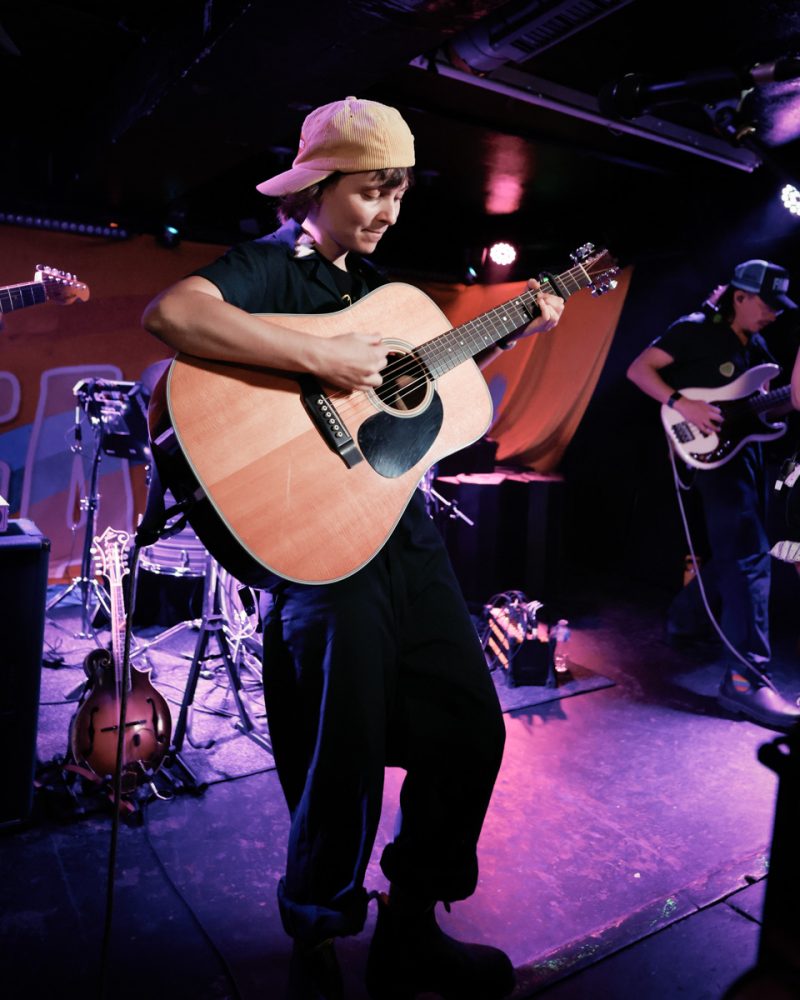 Great Divide – Acoustic strumming chords get this summer vibed track off the ground as the rhythm section leans in with a cool punchy snare drum beat as the bass kicks follow on and let the track open. Mandolin tones are again bubbling under the surface as Pepi steps forward and lets us have it, the bassline is working quietly in the background as Dan brings the low end which just allows the track to move swiftly through the venue as we just smile from ear to ear as this quirky 5 piece really give it their all tonight as we groove away on our own as Travis steps forward and delivers a short, sharp killer solo that really brings the track to life, Fanny’s awesome vocals really wrap themselves around this toe tapping, thigh slapping country groover as we flow swiftly into the acoustic section with –