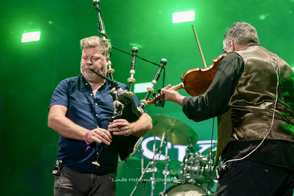 With the strong crowd now whipped up into a frenzy, it was time to bring in the Scottish music. Enter Skipinnish, a nine-piece Scottish band the crowd knew and loved. With fiddles, flutes, accordions, and bagpipes (to name just a few), they reminded everyone we were firmly in the Scottish Borders. Celebrating nearly 26 years as a band, they knew exactly how to involve the audience, treating us to an