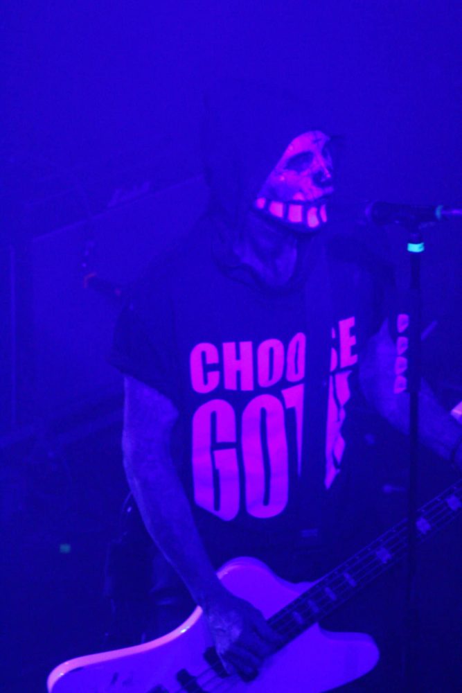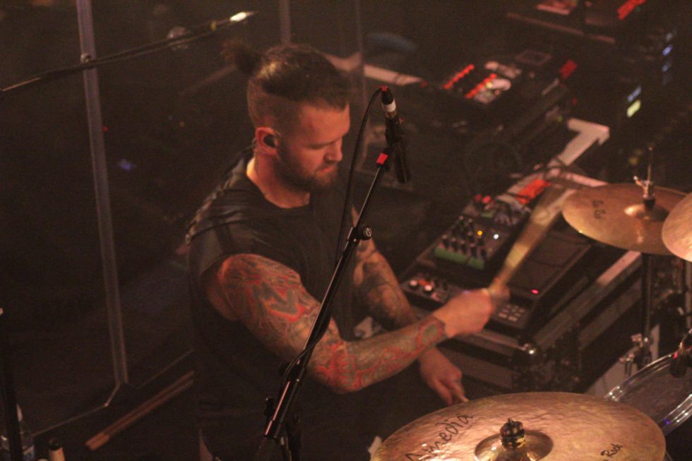 Aaron took a breath to announce “Wasn’t Human” with it’s backdrop red lighting and yellow strobes engulfed with smoke set an eerie vision, backed by a masterclass on going round a drum kit Dan can do it with ease,this got a huge energetic round of appreciation from the sell out crowd before “Hate springs Eternal” took us to the last few songs from the set, Tombs took the vocals joined by Aaron and carried on in the same vein this time shadowed in darkness, pale light enshrined us with Aaron finishing off.