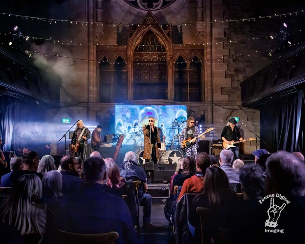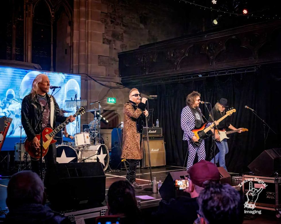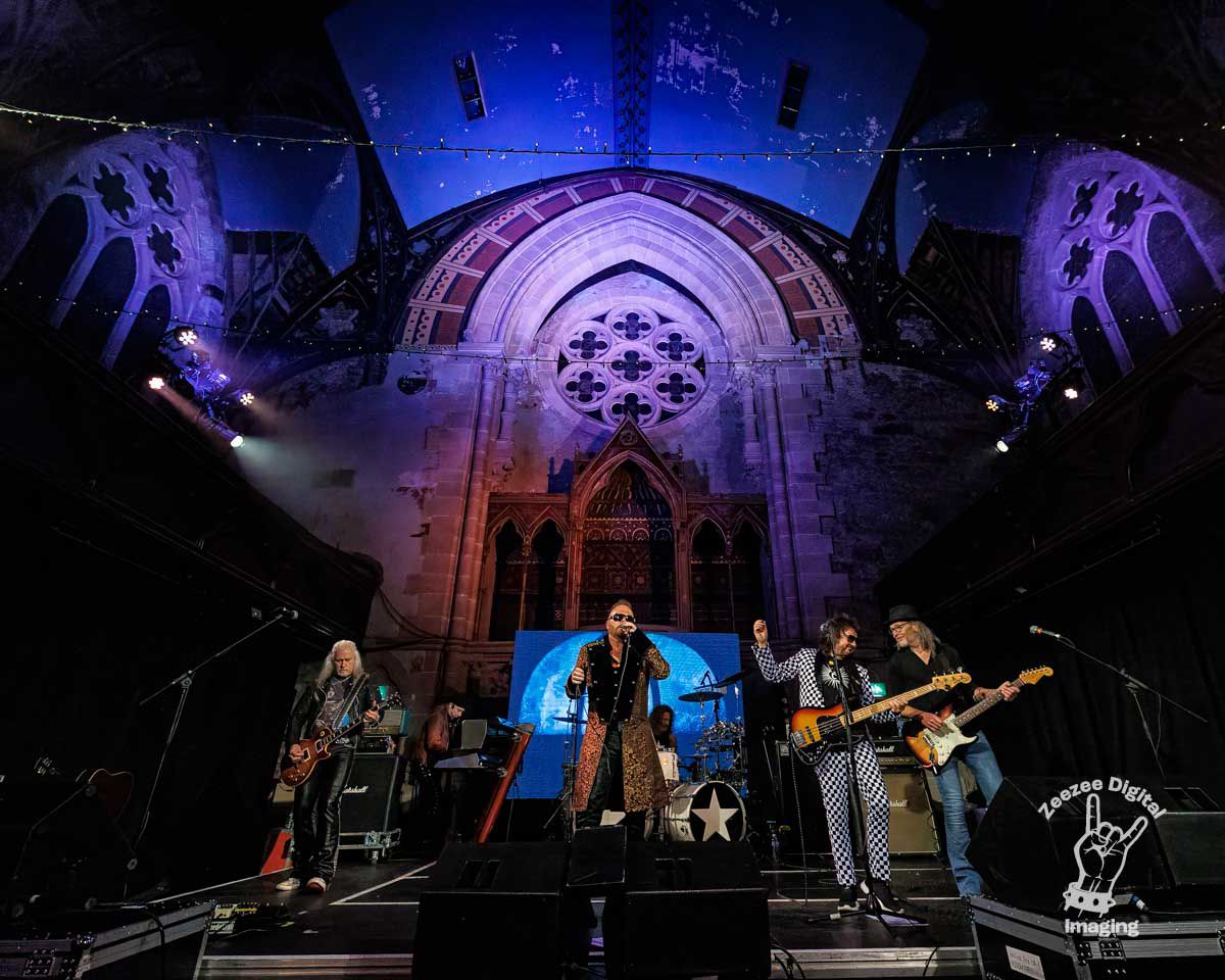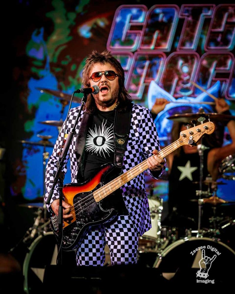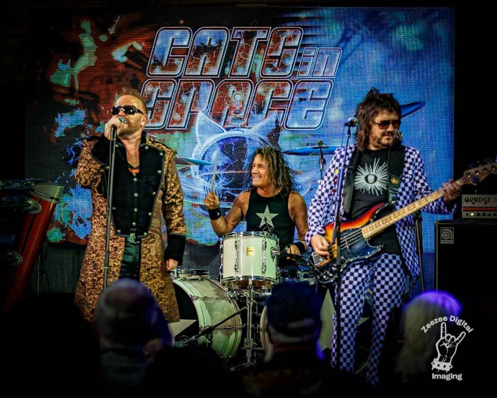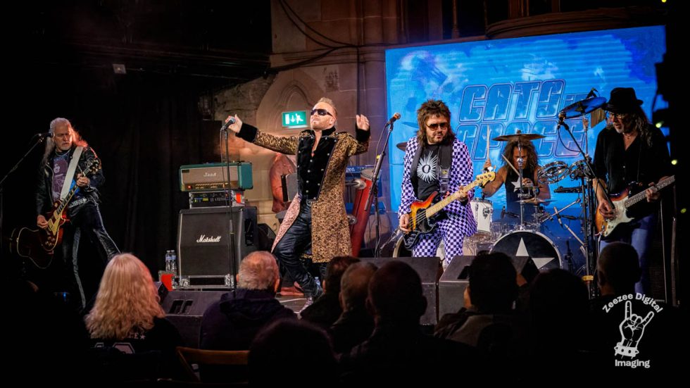 Cats In Space are a Glam / Power Pop / Hard Rock band from Horsham, West Sussex, England who originally formed in 2015 and this year marks their 10th Anniversary. Cats In Space originally made their debut appearance @ London’s Half Moon in Putney on 6th Jan 2016, this led to many new shows and fastivals such as Stone Free & Ramblin Man. 2017 sees the boys tour with Thunder & Phil Collins @ BST, this ultimately led to support slots with Deep Purple, Status Quo all in 2017 then slots with Bonnie Tyler & Blue Oyster Cult. The boys have given us 7 studio albums, 2 live albums and to celebrate this landmark year they are out on tour, tonight they stop off at the spectacular Cottiers Theatre which is brought to you by ShockCityProductions & OnPointTouring, please join me as I take us through their electrifying performance in the intimate setting of this splendid venue, the stage is set and the visuals are blinking away at the back of the stage behind Steevi and as the lights dim and the house PA fades the guys take to the stage and take us into –