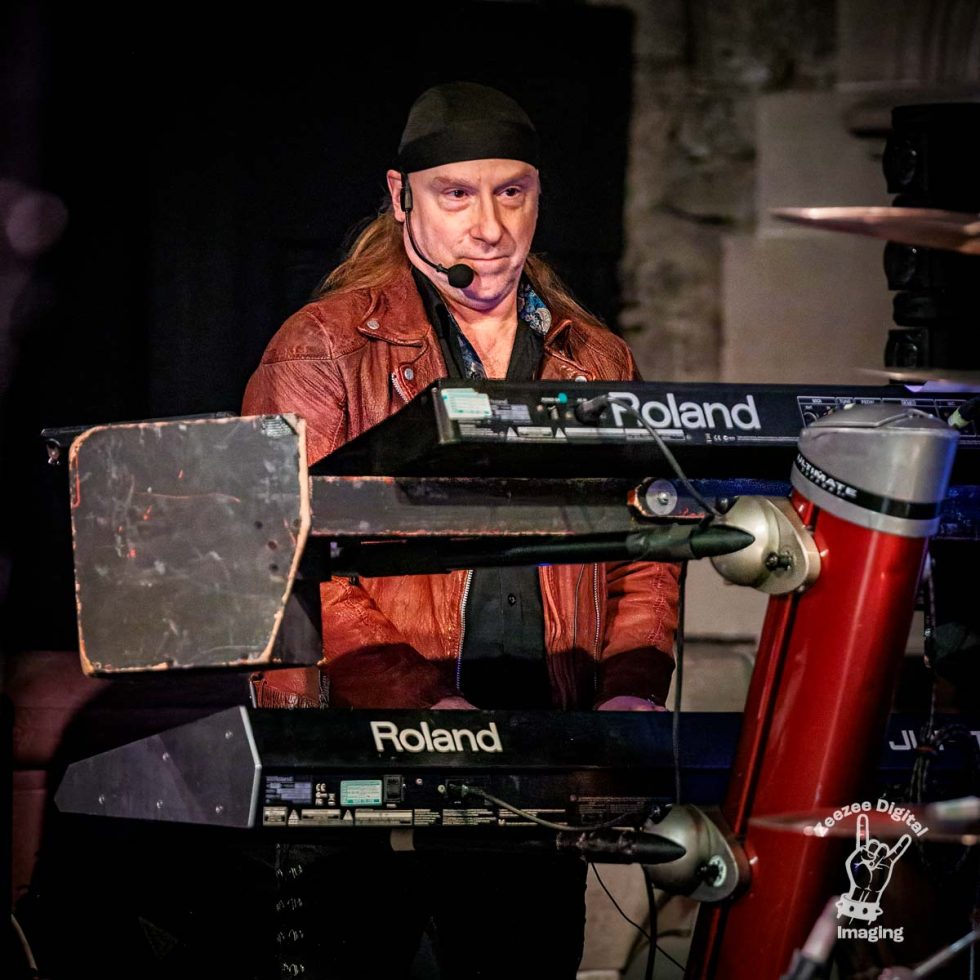 Queen Of Neverland – Damien chats about the track and what album it comes from as the shredding riffs fill the air as the pounding rhythm section kicks in the doors as this rocking groover bursts into life. The snare drum punches are letting the groove flow as Damien lets his soaring vocals lead the charge of this foot stomping, rock n roll monster, the boys are really coming together as the place is really getting into this funk, fusion groove night as we feel the energy pouring from the stage as the boys shift through the gears and really let our imagination run wild. The piano tones are wrapping themselves around this real nice arrangement as they work well with the twin guitar salvo that is coming at us right now as the boys really give us a show which we will remember for a time and no doubt it will be talked about for ages, up next –