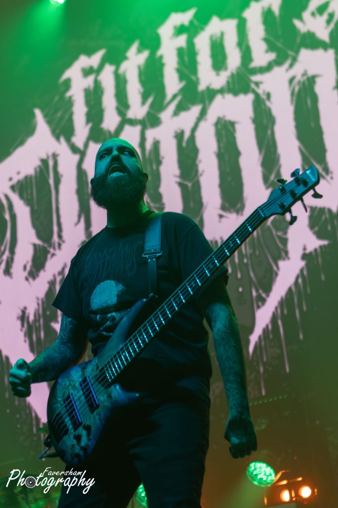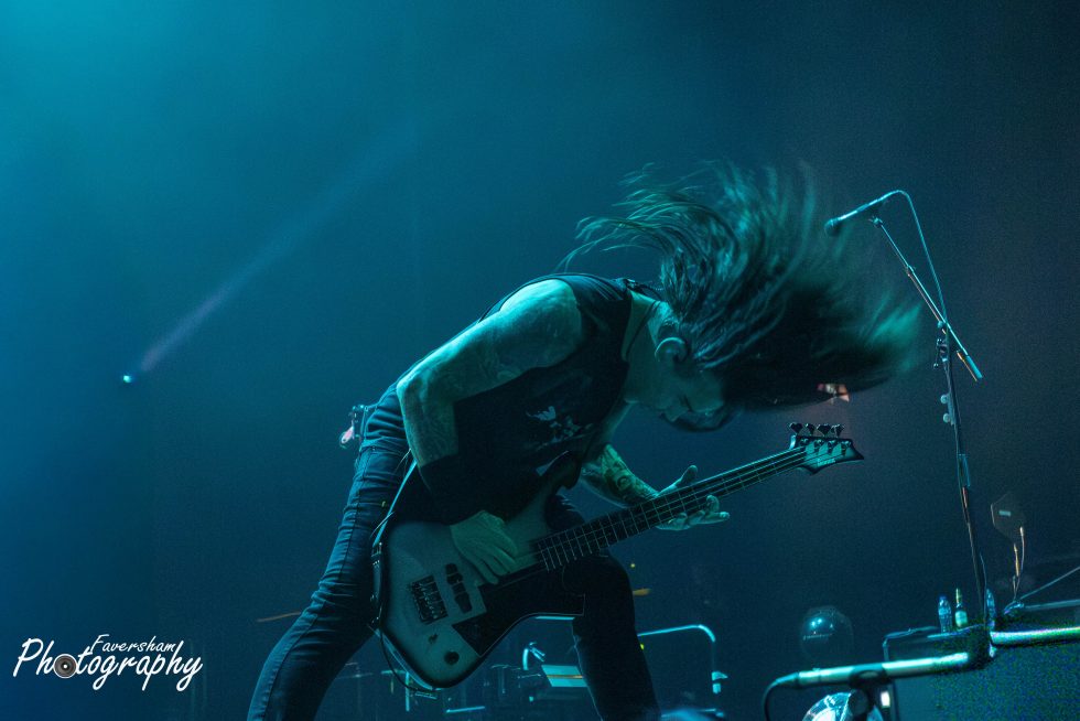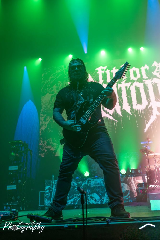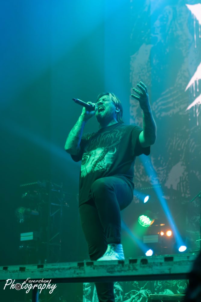 Second to the stage were US deathcore band Fit for An Autopsy. The New Jersey group built on the work of Decapitated in building the atmosphere in the arena. In their first ever visit to Wembley the band increased the crowd interaction calling for the circle pits to be bigger. The audience were treated with a mix of old and new material. Guitarist Tim Howley’s animated use of his hair was notable as was vocalist Joe Badolato’s grins showing how much this new experience meant to New Jersey natives.