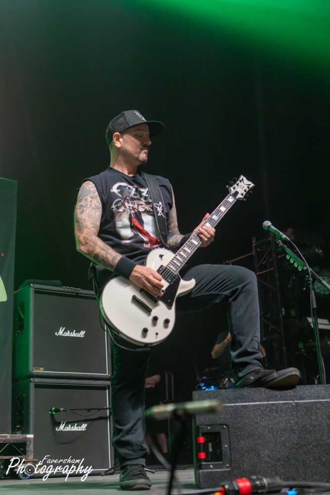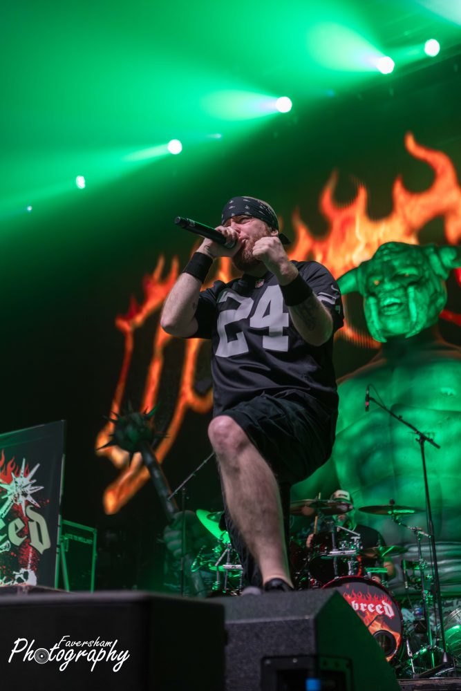 Third up were main support act Hatebread. The stage was set including a large inflatable devil as the backdrop behind drummer Matt Byrne below a flaming band logo on the screen. It didn’t take long for the crowd surfers to start with the audience taking their energy from the band who were constantly in motion around the stage. Vocalist Jamey Jasta had a left versus right battle with the crow during “Destroy Everything. Later in the set a large inflatable black ball “the ball of death” was released on to the crowd which was batted back and forth and the security at the barrier even joined in. Jasta commented “What a great night” and dedicated it to Lou (former guitarist for the band that passed in 2006). “Who is seeing Hatebreed for the first time?” was met with massive cheers before Jasta commented “you are diehard as they come”. As the set drew to a close the band called for one more circle pit and encouraged people to come out of mosh pit retirement. Hatebreed were met with a massive cheer at the end and I am sure that they had increased their fan base after this performance.
