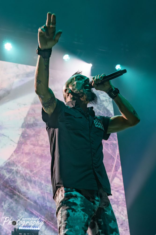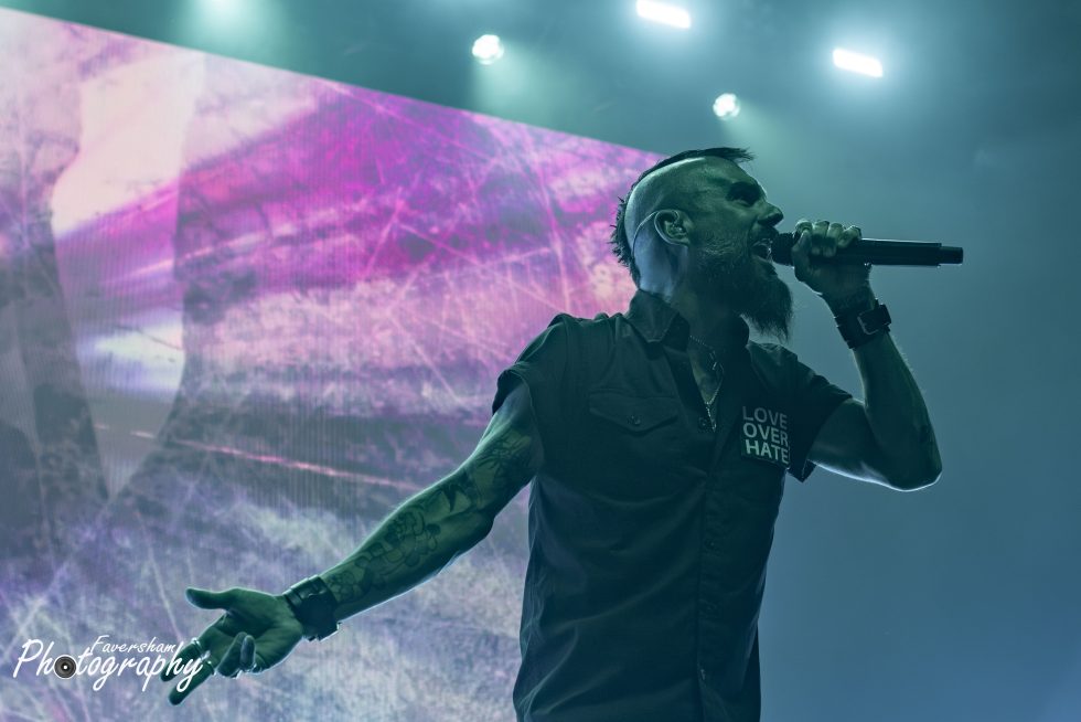 Finally up were headliners Killswitch Engage. Having first seen the band on their coheadline tour with Trivium 11 years ago, I have been a massive fan ever since and the group are now one of my most seen bands live. Kicking off with “Strength of the Mind” it didn’t take long for the crowd surfers to begin. The band animated from the start which is to be expected when Adam D is on stage. Vocalist Jesse Leach commented “Just think a few years ago we were stuck inside and now look at us- all those germs all over you”. Which was met which a mixture of laughing and cheers from the crowd. Killswitch offered their appreciation “We’ve been at this a long time, we’ve been doing it 26 years, we are here because you”. During the whole set there were mosh pits and cheering and there was a particularly huge cheer when the band started “Hate by Design”. There was clapping along to “I believe” before Jesse delivered the message “Don’t let despair bring you down. You are not alone” and the crowd were in full voice from the start of “Arms of Sorrow”. Jesse makes his way down to the barrier and moves along it interacting with fans before the audience sings “In Due Time”. At the end of the song Jesse pays tribute to the other bands on the line up before launching into fan favourite “My Curse”. The crowd participation continued through “End of Heartache” where Jesse conducts the crowd before what was the most random part of the set. The music stopped as Adam practiced his watermelon bowling on stage before final song “My Last Serenade”. Jesse comments “Let’s have a big old happy sing along” before a massive mosh pit opens. The band finish to rapturous applause.