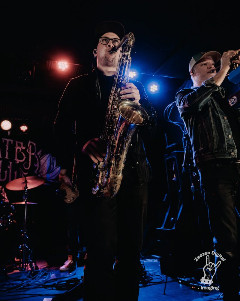 Talking Backwards – The gig kicks off with a killer brass section that lets this colossal blues infused rocker leave it’s mark on the fine folk of Glasgow as we hit the ground running and feel the electricity hit us from the very first note. Meghan unleashes her incredible vocals that are able to stop traffic let me tell you as she commands the crowd from the stage as we feel the groove take over us as this punchy kick ass track erupts, the trumpet tones are filling every corner of this cool venue as we get cowbell hits, slick guitar licks and it is all rounded off with a punchy rhythm section that controls the beat from the back of the room. We are going nuts for this phenomenal 7 piece groove machine that is like a tornado ripping through Glasgow with ease as we stroll into –