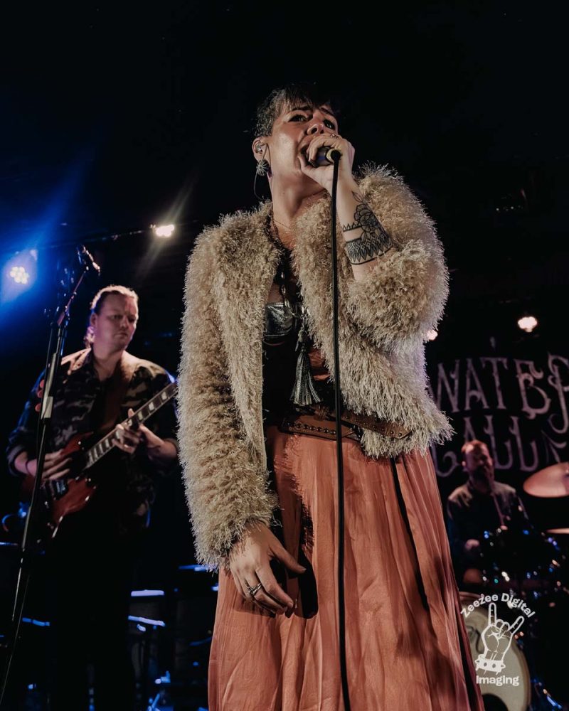 Arizona – It begins with a pounding drum section that lets the sweet keys join and lift the arrangement as Dave goes front and centre and brings us a sizzling guitar lick that has us all fixed on the stage as this incredible track comes to life. Meghan is crouched at her mic and hitting the tmbourine as this foot stomper comes to life as the brass section leans in and really sets the tone as the groove builds, the place is ready as Dave shreds out and really lets the track wrap itself around us as we feel the anticipation grow. Meghan yells out as the cowbell and brass section let the sizzle build as this melodic, blues masterpiece sets out it’s stall and really lets us have it both barrels as this awesome tune leaves it’s mark on the fine folk oF Glasgow tonight, a mellow saxophone solo ripples through the arrangement as this band really cements itself in the fabric of Southern Soul / Roots Rock as they deliver a real thought provoking track that allows Meghan to really deliver a crisp, clean vocal that fills every corner of this iconic music venue, we catch our breath and move onto –