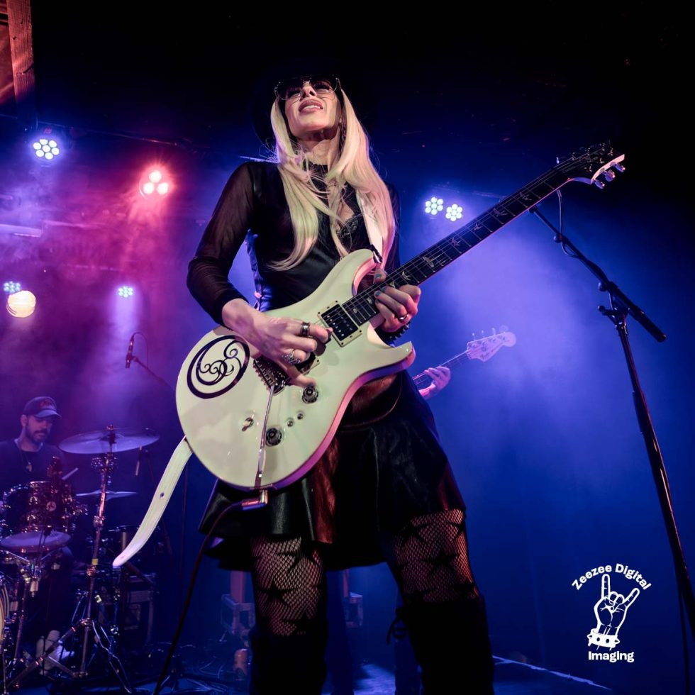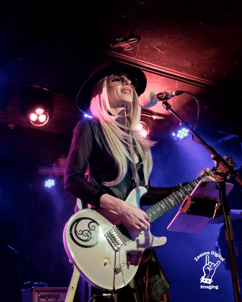First Time Blues – Orianthis steps forward with her trusty guitar in hand as the boys bring the groove and let tonight’s show burst into life as the thundering rhythm section brings the heat. Orianthis unleashes her inner demon with slick, crisp guitar playing that is mesmerising to watch and listen to as the place reacts to this Australian six string slinger go about her business as she sends wave after wave of colossal licks that are just putting smiles on people’s faces, the low end is coming at us with a real sense of belonging as Sam drops the hammer with intense, dark, delicious grooves that wrap themselves around this packed out show tonight as the good people of Glasgow holler, clap and yell as we see Orianthi bring the heat with exquisite guitar playing that tells us that we are in for a treat tonight as the place warms to this electrifying musician as she really brings the riffs to Glasgow tonight, we are feeling the love as she throws out lick after lick that wets our appetites for what she has in store for us as we drive straight into –