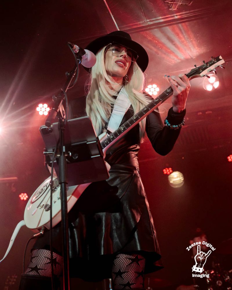 How Do You Sleep – A blues lick flows from the stage as Orianthi steps forward and just cuts loose as the cymbal rolls run freely through the intro as the classy guitar notes fill the air as this blues infused rock n roll track comes our way. The vocals are smooth, sultry, melodic and sit perfectly in the setlist as we come to the business end of tonight’s show as the band bring the groove to us tonight, The snare drum punches are oozing from the stage as the band just bring the heat as a funky, dark bassline drops in and wraps itself around this classy blues laden number that grabs our attention as the slick, crisp licks grab us from all sides and just delivers a no nonsense track that is just building with every note coming at us. The place is silent and just fixed on the stage as this classy, melodic number erupts with a hail of killer licks that are giving the track depth and poise as Orianthi leans in and just shreds out and gives everyone what they came for tonight as we get to the last but one track –