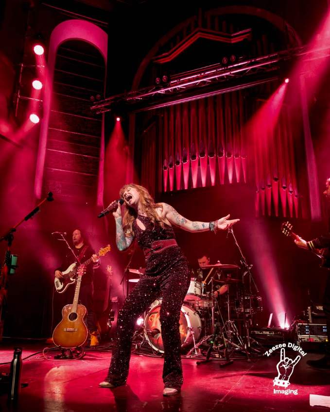 As the house lights fade and Viva Las Vegas blasts from the PA, the anticipation inside St Luke’s is electric. The band take their places and then Kezia appears — red fur coat, red sparkly jumpsuit, and pure superstar energy. Glasgow greets her like an old friend.