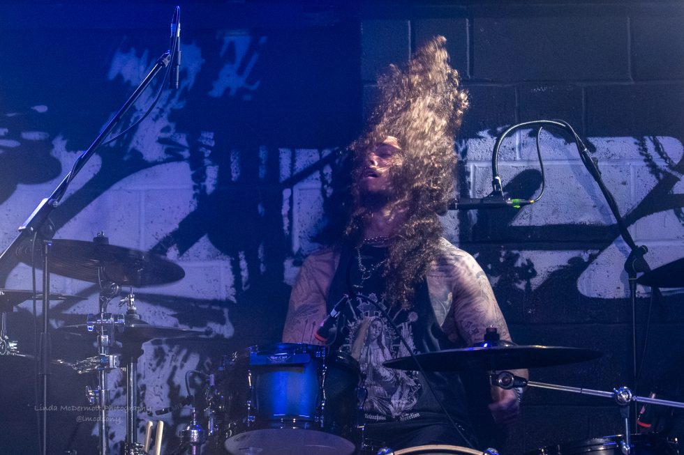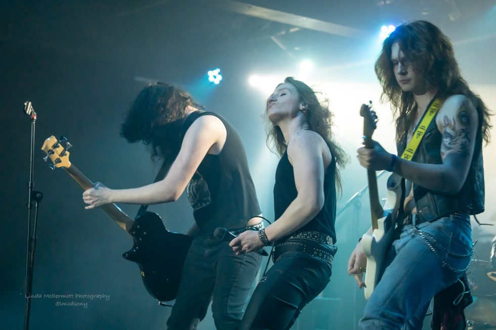 First up, introduced by compères and DJs Sabian and Charlotte, were White Lightning. The four-piece metal outfit opened with real intent. They brought high energy from the off and showed they’ve clearly put the work in to become a tight, polished band that would fit perfectly at the festival. Getting the crowd involved is always a gamble, but they handled it confidently, and the crowd responded. Their set was packed with driving riffs and relentless momentum that immediately warmed the room.