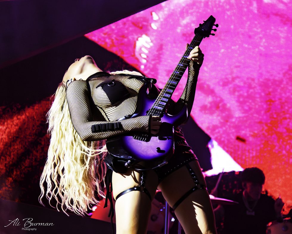 From there the energy rarely dipped. Backed by a tight, hard-hitting live band including the shred queen herself Sophie Lloyd, MGK powered through a set that leaned heavily into the guitar-driven pop-punk sound that has defined his recent work. Songs like Outlaw Overture and Starman had the arena bouncing within minutes, with distorted riffs and pounding drums ricocheting off the walls. The crowd responded instantly, turning the venue into a sea of raised hands, phone lights and voices singing loudly along to nearly every lyric.