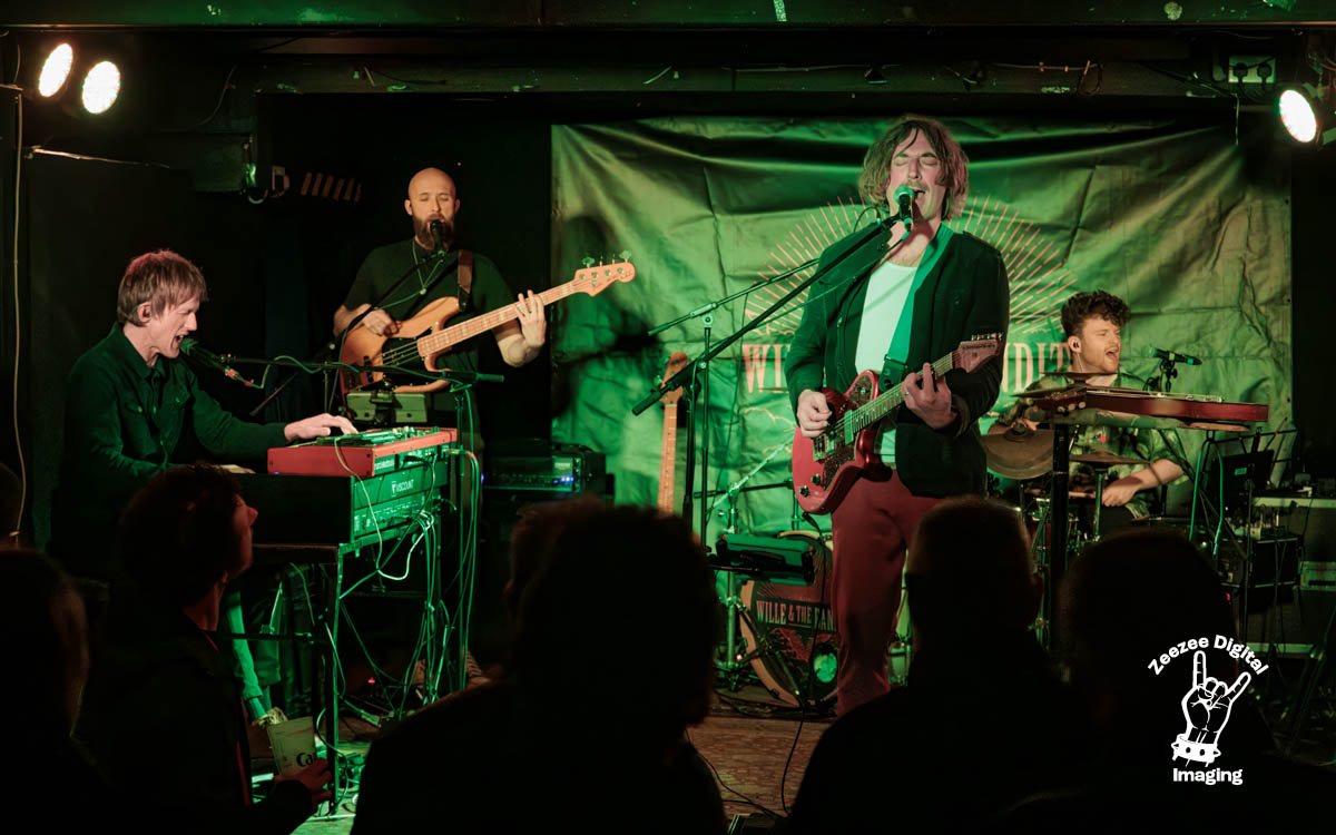 Angel – (Track about Willie’s Mum who he sadly lost) – Killer keys make an appearance in this incredible piece that really pulls at the heart strings for sure. Willie goes about his business and works hard on delivering a real passionate driven guitar riff that is being pushed all the way with the rhythm section as it thunders away at the back of the room. This is a real melodic driven track that just builds and builds as the boys come into their own and give it all they have as the track winds up and suddenly erupts with thundering consequences that just make sense, the track is a well laid piece that is a fusion mix of slick guitar playing and colossal drums that are dropping the big guns on Glasgow tonight as Willie & the boys do his mother proud with a killer arrangement that is dark with a real energy to it that is just building and building with every note that is spilling onto the stage tonight, we have been waiting a long time for this fantastic track to appear and appear it did, we drop into –