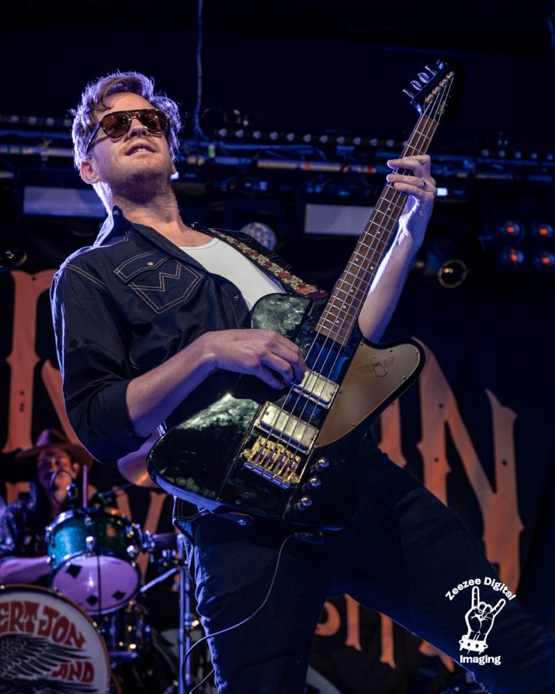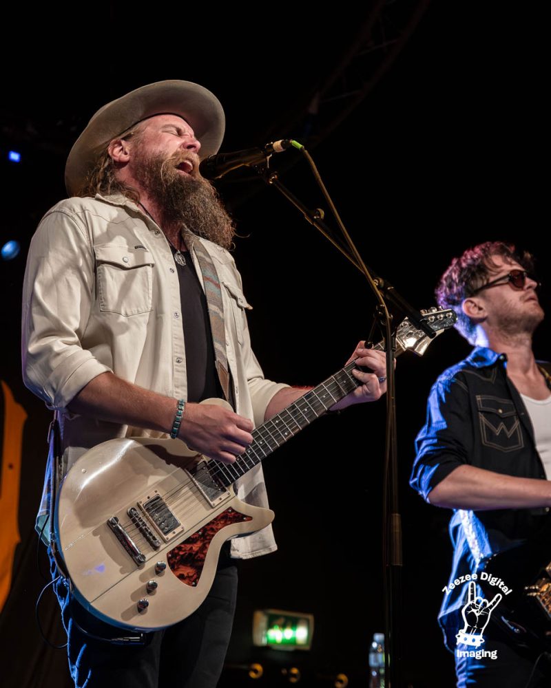 Sittin Pretty – Robert Jon asks us how y’all doing as a cool, haunting keys intro ripples through the venue as Andrew kicks things off with a furious, thundering rhythm kick as the cymbal crashes rain down on us. Robert Jon lets his gravelly, blues soaked vocals lead the charge as this foot stomping rock n roller gets the crowd all warm n fuzzy as this bruiser punches us traight in the face, the dark, delicious bassline is dropping in and wrapping itself around this kick ass country beast as Henry James steps up and throws out a colossal lick that grabs our attention as the boys really shift through the gears and hit us with solid track after solid track as the crowd are going crazy for these rockers from Orange County as they deliver a no nonsense, punchy, fast and furious rocker track that just puts a smile on your face, next up –