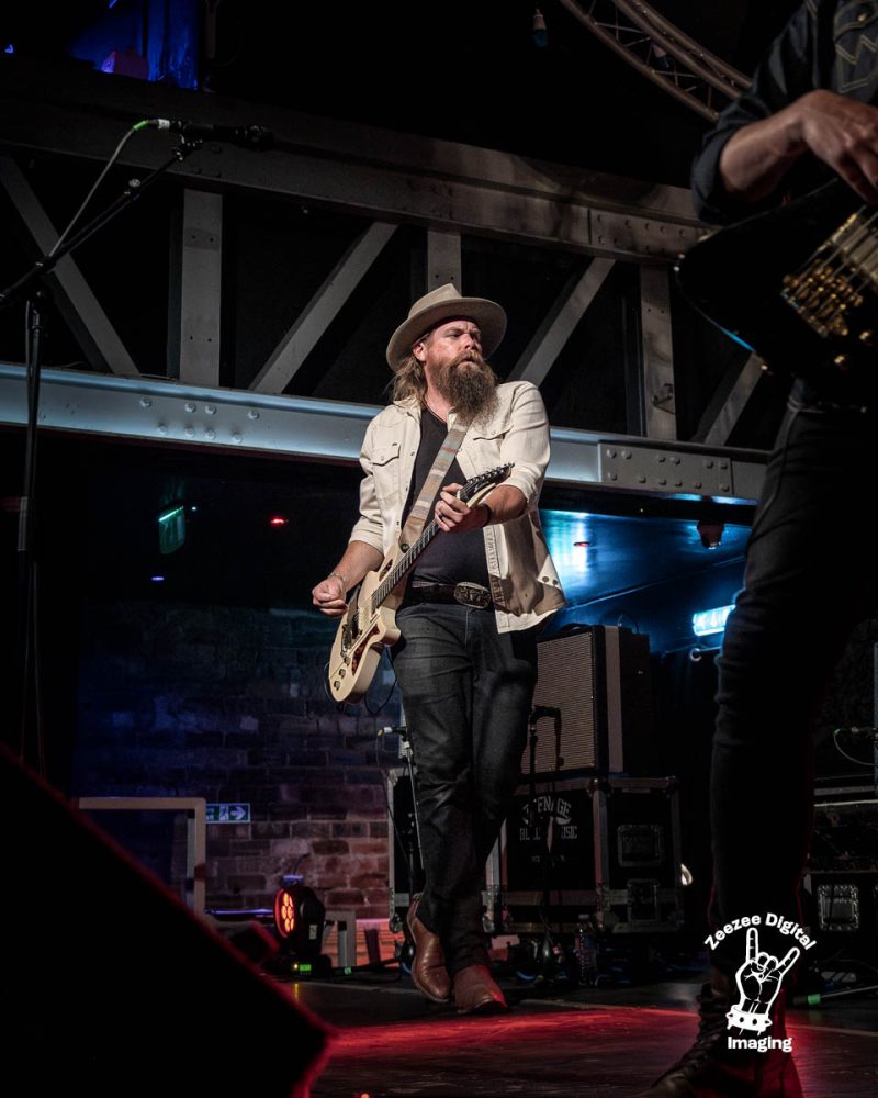 Oh Miss Carolina – Bursting riff comes at us before we have gravelly blues style vocals with a real cool edge to them, we have pounding drums with a punchy snare kick that is on point and sets the tone going forward, bass chords are plucking away and are throwing out funked chords of a bluesy heat which is bringing the track together, fantastic solo comes at us and has crisp blues riffs with a stunning pick up that is just incredible with tones and melodies that just fit, great opener to kick off this stunning new piece of music. The audience are really warming to this incredible 5 piece as they deliver a strong blues fuelled rocker driven set that is just on fire. Robert Jon asks for our help in singing alone to the chorus and I can tell you it was an incredible sight to see a full, rammed Garage in fine fettle as they sang with the guys and let them know that Glasgow is their home from home as we drop into –