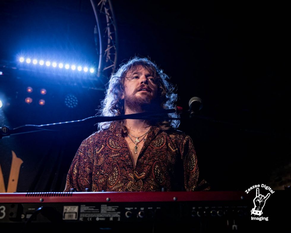 Back To The Begining Again – A crunching twin guitar assault breaks out as this foot stomping bruiser really lets the boys up their game with this awesome blues rocker track that grabs our attention. Andrew is controlling the groove with a solid snare punch that brings cymbal crashes and cool bass beats as this epic track really showcases their incredible talent that is shining through, the keys are littered throughout the track as Jake brings the pzazz to tonight’s show with real ease as he allows the track to breathe. Warren is swaying from side to side and has his trademark dark shades on as he drops incredible funk laden grooves all through the track as the place jumps around and feels the energy pouring from the hallowed Glasgow stage as the boys settle into their stride and bring the noise that has made them one of the most exciting bands on the circuit today, the place erupts in a hail of hollering, clapping as we move onto –