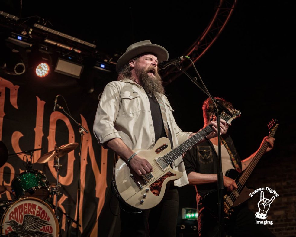 Dark Angel – A gritty, rasping guitar riff oozes from the stage as a punchy snare kick weaves it’s way through the track as Robert Jon leans in and lets his smouldering, bluesy vocals lead the way. The twin guitar licks are wandering through the venue as this dark gritty rocker track erupts as the boys settle into their groove as we enjoy these killer tracks that just grab our attention from the off, the cool, meaty, delicious bassline is hitting us with a real cool tone as the boys shift through the gears and hit us with crisp, clean grooves that make this show something a little special. The place is swaying from side to side and rocking out with the boys as they deliver a cool, gritty, rock n roll show that will certainly take some beating let me tell you, the songs are strong, fresh, bring attitude and swagger which as we know the boys have in bucketloads, next up –