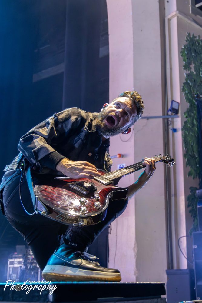 As we arrived at the venue, those with tickets circled the entire block that encapsulated the O2 Academy showing the huge following Skillet have acquired in their nearly 30-year existence. Upon entering the building, the room was packed ready for the Parisian band for their first foray onto the British Isles. The energetic 3 piece struck a chord with the audience from the off. Loïc Fouquet entering the stage and mounting his drum riser stood hand aloft to be greeted by cheers followed by bassist Adrien Richard and the white suit clad Maxime Goudard bursting onto the stage to start opening song Bright Soul. The band interacted well with the crowd getting them clapping along and doing the time-honoured tradition of seeing which half the audience could be louder with Maxime and Adrien taking responsibility for their respective sides. Throughout the set the band were animated, headbanging, jumping to the music and making the most of the large Brixton stage. As their allotted time was coming to an end, Maxime addressed the audience “Okay London! Let’s finish this all together, I wanna hear all your beautiful voices” before conducting the crowd for final song Suspect. The band left the stage to huge cheers in an evening they are not likely to forget.